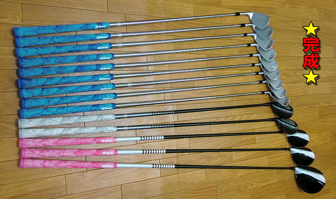 クラブの種類ごとにグリップの色を変えて挿しました