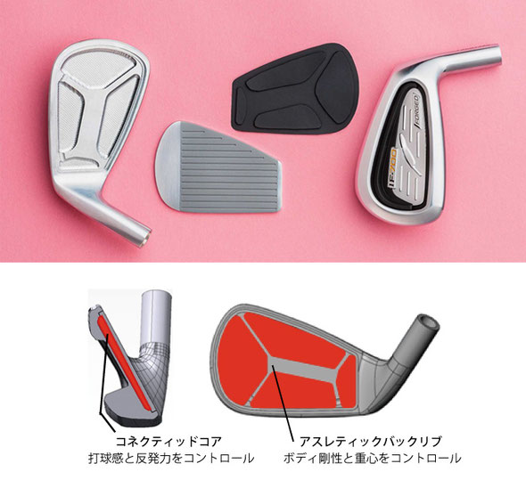 S25C軟鉄鍛造+精密機械加工により調角可能とした、ABRボディ(アスレティックボディ)に。ハイパーeメタルフェースをプラズマ溶接し、フェース内部にコネムテッドコアを充填させることにより、初速感に加えて、弾き感とマイルドな打感を★